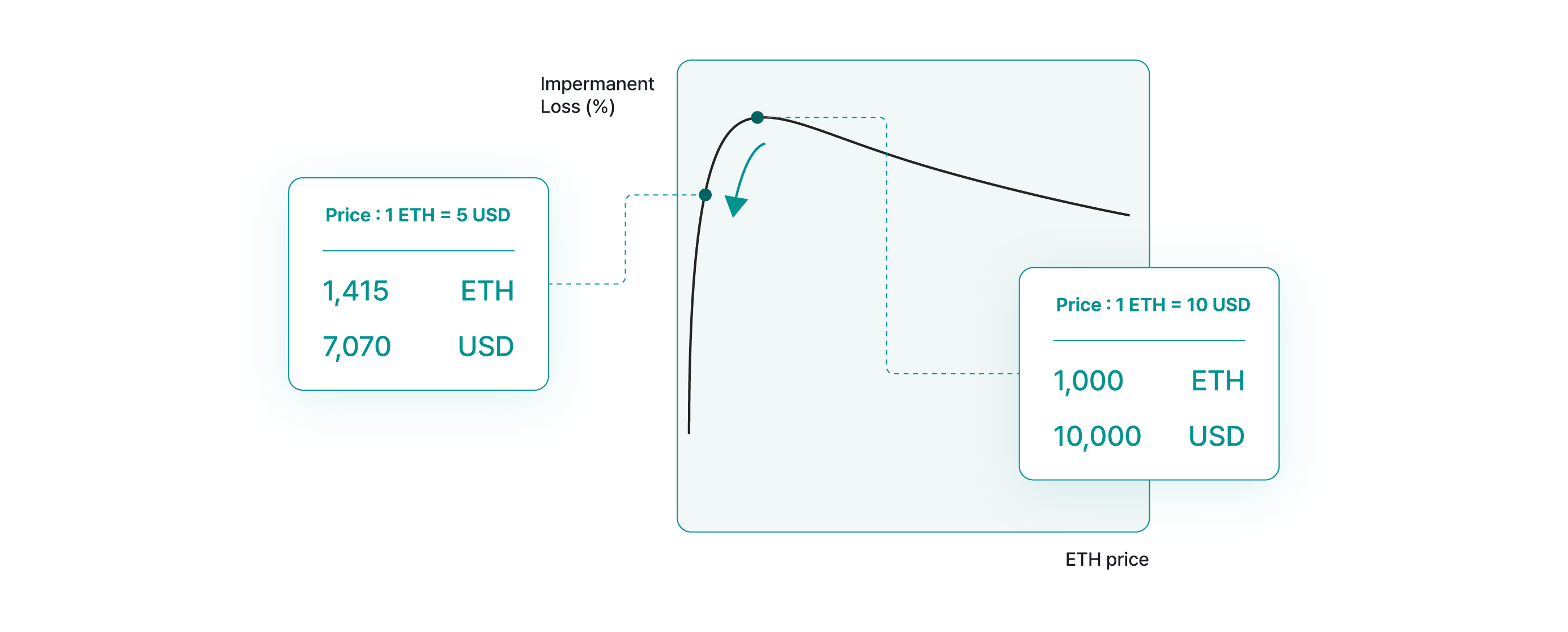 <table><thead><tr><th width="176"></th><th>ETH</th><th width="153">USD</th><th>SUM</th><th data-hidden></th></tr></thead><tbody><tr><td>Holding(Initial)</td><td>1,000</td><td>10,000</td><td>15,000</td><td></td></tr><tr><td>LP token</td><td>1,415</td><td>7,070</td><td>14,145</td><td></td></tr></tbody></table>